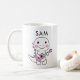 Enjoy your favourite drink with this personalised, fun, and playful pink, black and white coffee mug! Featuring a cute dancing dino and customisable with your child's name, this charming mug adds a touch of joy to any kid's day. Perfect for little dino lovers, it's a great gift for birthdays or any special occasion!