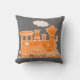 Kids name steam train orange grey throw pillow