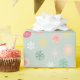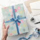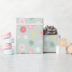 This sweet holiday gift wrap adds the perfect touch to your holiday gift this Christmas. The design features a soft green background with a pattern of colourful snowflakes in pastel and red colours.