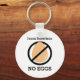 Kids No Eggs Allergy Alert Personalised Keychain. Use these key chains on your child's lunch, school supplies or other items. Personalised with child's name. Text reads "NO EGGS". Customise to choose a different colour background. Image shows egg with a black line across inside a black circle. Egg free symbol for egg allergies. Designs by Lil Allergy Advocates www.lilallergyadvocates.com