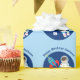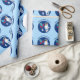 Cool customisable outer space wrapping paper for a kid who rocket ships and planets. Add your child's name and age in blue and white to personalise your gift for a boy who likes astronauts floating next to spaceships.