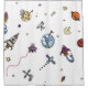 Fun Outer Space Kids Shower Curtain - Features a collection of objects your little space fan might find in outer space-- rocket ships, UFOs, planets, satellites, stars, moons and even earth! It is seen here with a white background, but the background can be changed or a beautiful starry night background can be activated.