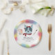 Cute and colourful painting or art theme birthday party paper plate featuring rainbow colour paints with faux gold glitters around with a cute french bulldog with red beret hat and scarf, painting palette, and painting brush. Customise this product by adding your child's name, age, and event date at the bottom.