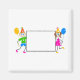 Cute cartoon illustration of a little boy and girl wearing a party hat and each holding a birthday balloon. just add your own personalised message in the empty space.