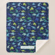 Kids Personalised Dinosaur Blue Green Boys Pattern Sherpa Blanket