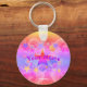 Keychain with beautiful fun color, for kids, has stars and a psychedelic tie dye look design by, HAMbyWhiteGlove with orange, pink, purple, yellow.