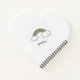 Colourful girly pink, blue and yellow pastel rainbow, stars and dancing unicorns with popular font typography name which you can easily personalise via the edit menu. This really cute heartshaped Notebook will delight your little girl's day as she writes her personal secrets or other important notes she may wish to keep.