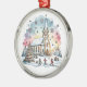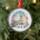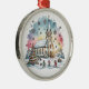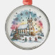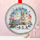 Pretty whimsical watercolor church and chapel, Christmas tree and children playing in the snow Christmas ornament.