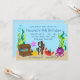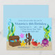 This cute customisable pool birthday party invitation features a scene under the sea with a treasure chest full of gifts, and an octopus and a crab wearing party hats, and a starfish holding a balloon.