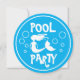 Kid's Pool Party Birthday invitations with mermaid. Under the sea swimming theme party invites for children's Birthday party. Personalised text and background colour. Cute girly fairytale fish design with name and age of child. Whimsical typography template. Cute round circle cut out shape. Make circular invites for girl's 4th 5th 6th 7th 8 th 9th 10th 11th 12th 13th B'day etc. Custom text and graphics. Great for summer!
