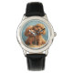 Children puppy vintage leather watch