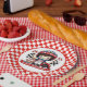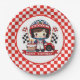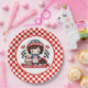 A Cute Red And White Check Racecar Diver Happy Birthday Round Paper Plate