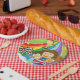 A design with a bunch of kids racing on a colourful rainbow. This design looks really effective on these Paper Plates