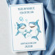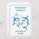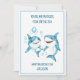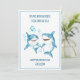 Kids Shark School Classroom Happy Valentine's Day Holiday Card features two adorable watercolor sharks surrounded by blue water bubbles, brought to life in a playful kids' cartoon style. The front design includes a blue funny text with Valentine’s Day wishes, framed by a matching blue line on a crisp white background. Add a personalised name for a fun and thoughtful touch.