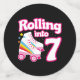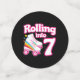 This skate party design is perfect for a roller skating party or birthday theme for a 7 year old. If the birthday girl or birthday boy loves to roller skate, they will LOVE this skate party design! Features retro style "Rolling into 7" birthday quote with cool roller skate graphic with rainbows & stars that's fun & unique. Fun roller skate party design for a 7th birthday!