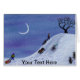 A tiny watercolor and ink evening landscape of children sledding under the crescent moon. Painted for Art-O-Mat.