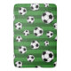 This fun kids sports equipment pattern has soccer balls on a green field striped background. The athletic gear design makes a great addition to the bathroom décor of a little boy or girl. It also makes a cute birthday, Christmas, or other holiday gift.