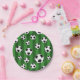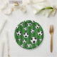 Kids Soccer Ball Pattern on Green Stripes Birthday Paper Plate