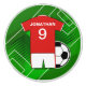 We can create this design in any colour scheme, just contact us PRIOR to purchase via the ask the designer link to discuss the changes you require. Great design for the young soccer players bedroom, This design features a modern green background representing the grass on a soccer field , it also features a red and white soccer shirt that can be customised with personal number and name and also a soccer ball