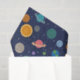 A fun and modern solar system pattern with colourful planet, star and sun illustrations against a dark blue background. Great for a child's birthday or special occasion