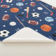 This fun kids sports equipment pattern has soccer balls, footballs, baseballs, volleyballs, hockey sticks and pucks, and baseball bats. The athletic gear has a background of dark blue. It makes a great addition to the bedroom or nursery of a little boy or girl. It also makes a cute birthday, Christmas, or other holiday gift.