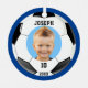 Kids Sporty Blue Photo Soccer Metal Ornament. Personalise with child’s photo, name, jersey number and the year to create a Christmas keepsake they will love.