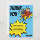 Send an extra special superhero thank you card to your friends, thanking them for attending your party and gratitude for their gifts. Featuring you as a superhero by using a photo of your face! With playful text that reads "THANK YOU" and "i enjoyed the cake and the presents too, but my favorite part was seeing you! THANK YOU FOR COMING TO MY PARTY AND THE WONDERFUL GIFT" and "THEIR NAME" The font styles and background color can be changed by clicking on the customize further link after personalizing.