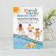 Get ready for an epic pool party birthday bash for your kids! Invite their friends to join the fun with this invitation featuring a group of children having a blast at the swimming pool.