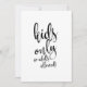 An elegant cutting edge wedding sign, features the text "Kids only, no adults allowed!" in a extroverted script font, the brush texture adds a spontaneous and playful feeling. The background colour can personalised according to your needs and preferences, please contact me if you have any special request.