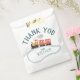 This cute and modern transport-themed kids birthday thank you favour bag design features a blue train travel illustration, with tracks, on a modern white background. The bags can be personalised with your boys name. The perfect travel-themed addition to your toddler or child’s birthday party!
