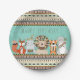 Kids tribal birthday party paper plates with adorable whimsical tribal animals on a cute teal blue Aztec Native American Indian style background. These cute tribal paper plates are perfect for a tribal birthday party and can be customised with the text of your choice in the font style and colour you prefer.