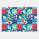Kids Under The Sea Christmas Patchwork Quilt Pattern Wrapping Paper. Narwhal, shark, whale under the sea themed red, green and blue holiday pattern with peppermints, snowflakes, candy canes and ornaments.