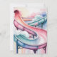 A dreamy watercolor painting of a curved waterslide rendered in soft pastel pink and powder blue hues that blend and flow together like cotton candy clouds. The slide winds gracefully through the composition with gentle curves and spirals, its translucent colors bleeding into each other with the characteristic wet-on-wet watercolor technique. Delicate splashes and droplets of water are suggested through lighter washes and negative space, creating a sense of movement and joy. The background fades into a pale, ethereal wash of complementary pastels, giving the entire scene a whimsical, childhood-memory quality with soft, diffused lighting.