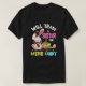 I give wanted to give this a 4 instead of a 5 because these Basic DARK T0shirts run unexpectedly SLIM or Narrow. Which is great if you do not have a potbelly, but I have a paunch. It isn't the shirt's fault that I've got a beer belly. The design and shirt itself is a quality cotton shirt. The color is more of a deep purple, but still a very pretty color. The Basic DARK T-shirts run a bit SLIMMER than the Basic Ts. The neck is a fraction narrower (or seems to be narrower) also. I'm a paunchy middle-aged woman and my neck is 12 inches (31cm) thick and the neckline fell about the same as in the photo of the man, and I had the desire to tug it a bit. So if you're a thick necked man or like loose shirts, be aware these are slimmer shirts. Once I get rid of my lockdown paunch it'll look great. The shirt washed well in cold water with no apparent bleeding. We don't have a dryer, so it hung dry. Did not shrink. Love the colors and the design. The design looks smaller on my shirt than it does on the model on-line. But still, it looks good on the shirt. The printing looks as it does on the model, just the size seems fractionally smaller. Washed garment in cold water, hung dry and design appeared unaffected.