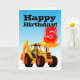 Kids Yellow Digger 5th Birthday Card