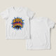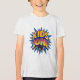 "Welcome to the Kids Zone! This vibrant and playful t-shirt design features bold, retro-style lettering in bright yellow, orange, and red, outlined in deep blue with a dynamic starburst background. The design pops with a comic-book-inspired look, making it perfect for kids who love bold, energetic styles. Whether for playtime, school, or weekend outings, this fun graphic tee will add a splash of excitement to any young wardrobe, letting kids know they’re in their very own fun-filled zone!"