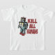 This ironic killer robot wishes to kill all humans, and he's very clear about that. Retro styling on the clockwork old toy robot and the fifties B-movie style text give this design a terrifically fun but stylish air, and you should probably buy one to avoid being killed, along with all humans.