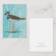 This charming blank notecard features an original collage artwork of a killdeer bird, created by artist Amy Evans. The design was lovingly crafted using hand-painted paper, carefully cut and torn to form the expressive shape of the bird. Layers of textured brush marks and splattered paint give the piece a lively, tactile quality, while the background showcases rich shades of teal blue that bring the whole scene to life.