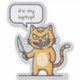 A fun sticker featuring a killer cat with a knife. You can customize the default text "it's my laptop!". This is a great gift for cat lovers who are into their laptops, cars, etc.