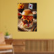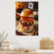 Get a kick of flavour with this delicious Kimchi Bulgogi Burger. A tender beef patty, marinated in a sweet and savory bulgogi sauce, is topped with spicy kimchi slaw, a generous smear of gochujang mayo, and a sprinkle of crispy sesame seeds, all stacked high on a fluffy milk bun. A small South Korean flag adds a touch of Korean charm, while chopsticks and a side of crispy tempura fries complete this Korean culinary masterpiece.