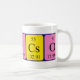 Kincsö spelled out as K I N Cs O (Potassium Iodine Nitrogen Cesium Oxygen) on a mug for the scientist in you.