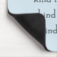 The words "kind thoughts, kind words, kind heart" are a reminder and meditation, appearing along with a drawing of a lotus flower, on this lovely computer mouse pad in light blue, or the background colour of your choice.