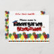 Kindergarten Graduation Announcement Invitations featuring blue, red, yellow & green colours, cap and diploma with the words "Please come to Kindergarten Graduation" on the front side. The reverse side has template fields for Kindergartener's name and date, time & location of event.