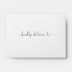 A clean and simple envelope with beautiful calligraphy for your return address featuring "Kindly Deliver To" label on the front.