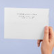 A Wedding Return Address Envelope is an elegant envelope designed for guests to send their RSVP or thank-you notes back to the couple after the wedding. This envelope features a neatly printed return address on the back flop, often in a stylish, formal font that matches the wedding theme. The front has "kindly deliver to" in stylish font and little dots in three lines for easier addressing.