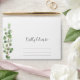 A Wedding Return Address Greenery Envelope is an elegant envelope designed for guests to send their RSVP or thank-you notes back to the couple after the wedding. This envelope features a neatly printed return address on the back flop, in a stylish, formal font that matches the wedding theme. The front has greenery detail , "kindly deliver to" in stylish font and little dots in three lines for easier addressing.