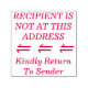 This rubber stamp design features the messages "Kindly Return To Sender" and "RECIPIENT IS NOT AT THIS ADDRESS", along with an arrow shape. It could be used to indicate that received mail has been delivered to the wrong address or that the recipient is unknown, and should be returned to the sender.