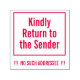 This rubber stamp design features the messages "Kindly Return to the Sender" and "!!! NO SUCH ADDRESSEE !!!". It could be used to indicate that received letter mail has been delivered to the wrong address or to an unknown recipient, and should be returned to the sender.