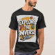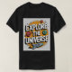 A dynamic kinetic-style t-shirt design featuring a vibrant space theme. The artwork showcases a swirling galaxy with shooting stars, planets, and a glowing astronaut in motion. Bright neon colours like electric blue, cosmic purple, and starburst yellow contrast sharply against a dark background, creating a sense of energy and movement. Perfect for space enthusiasts and fans of bold, futuristic designs. Ideal for casual wear, sci-fi conventions, or as a statement piece for those who dream of the cosmos.