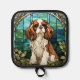 Pot holders featuring a King Charles Cavalier Spaniel artistically done in a stained glass window mode.